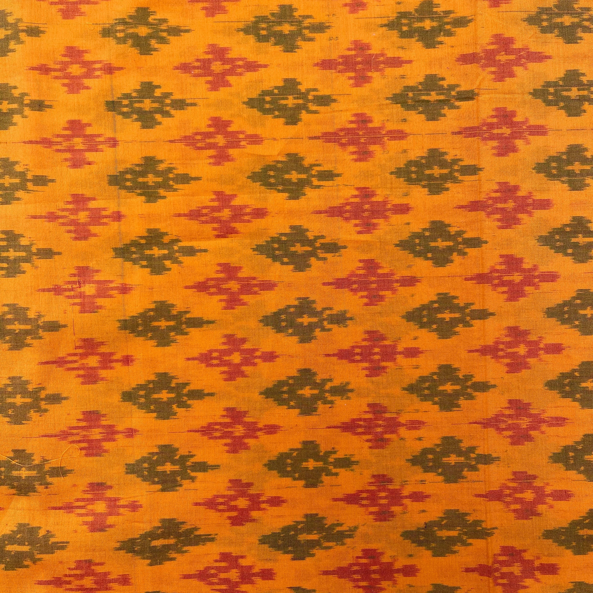 Mustard Yellow Color Raw Silk Ikkat cotton Fabric