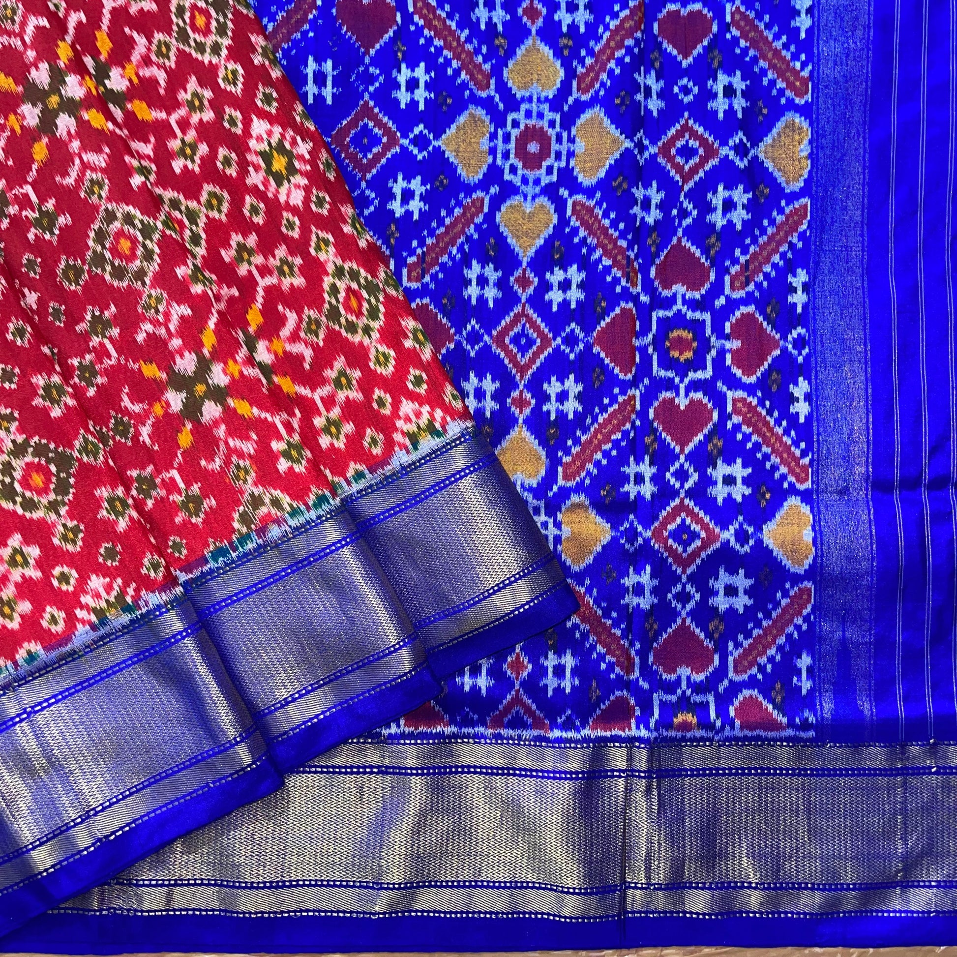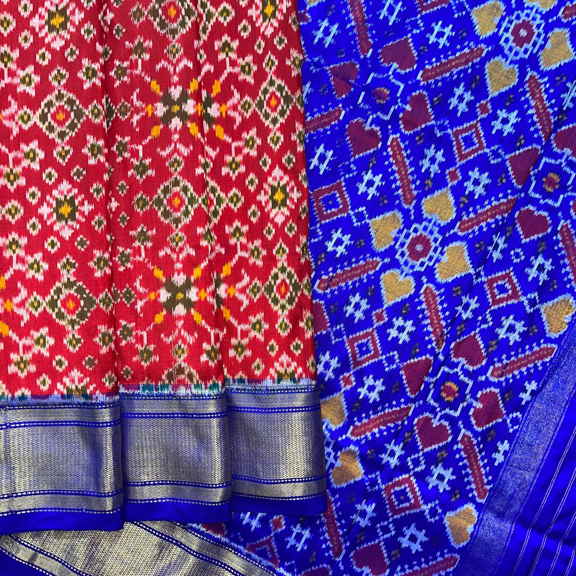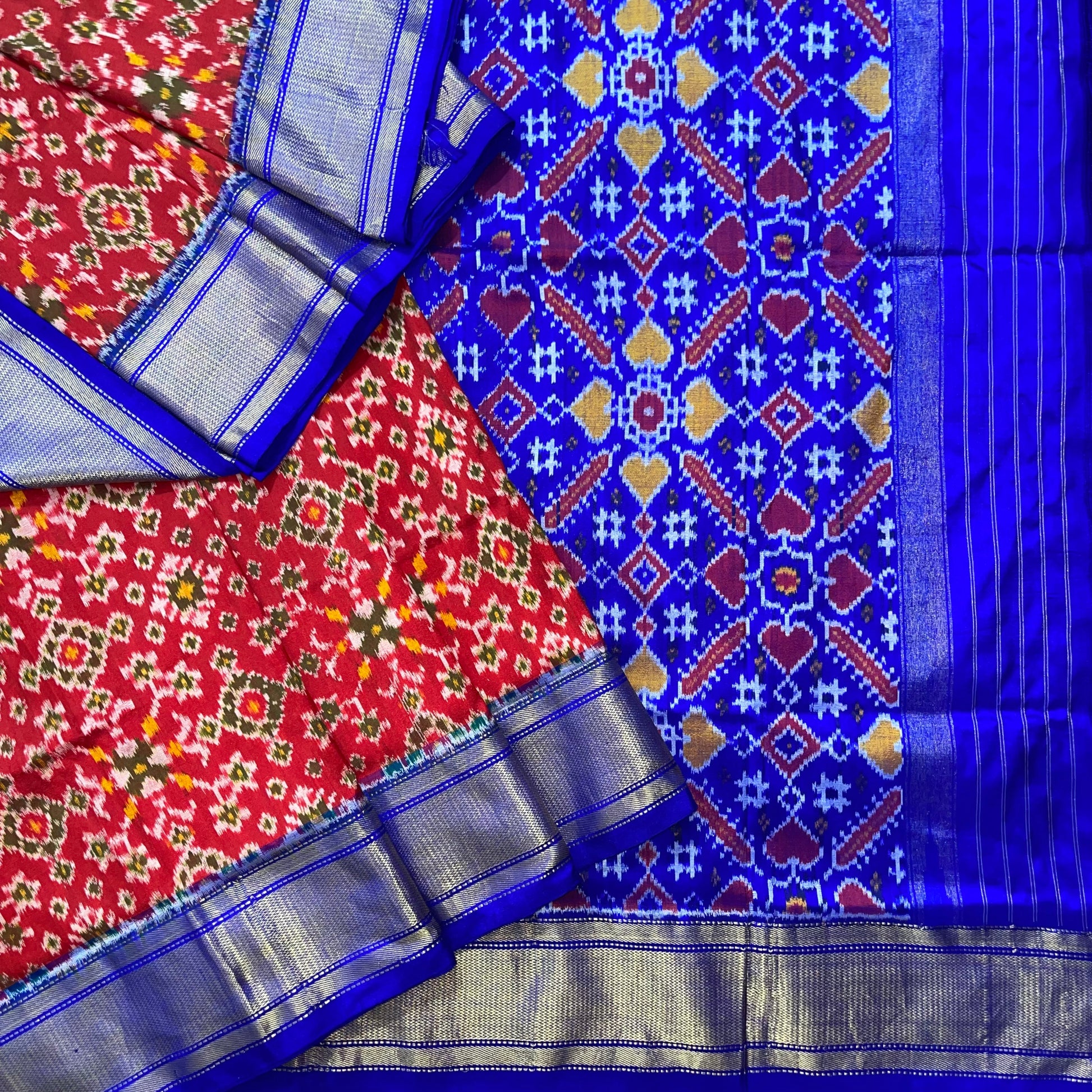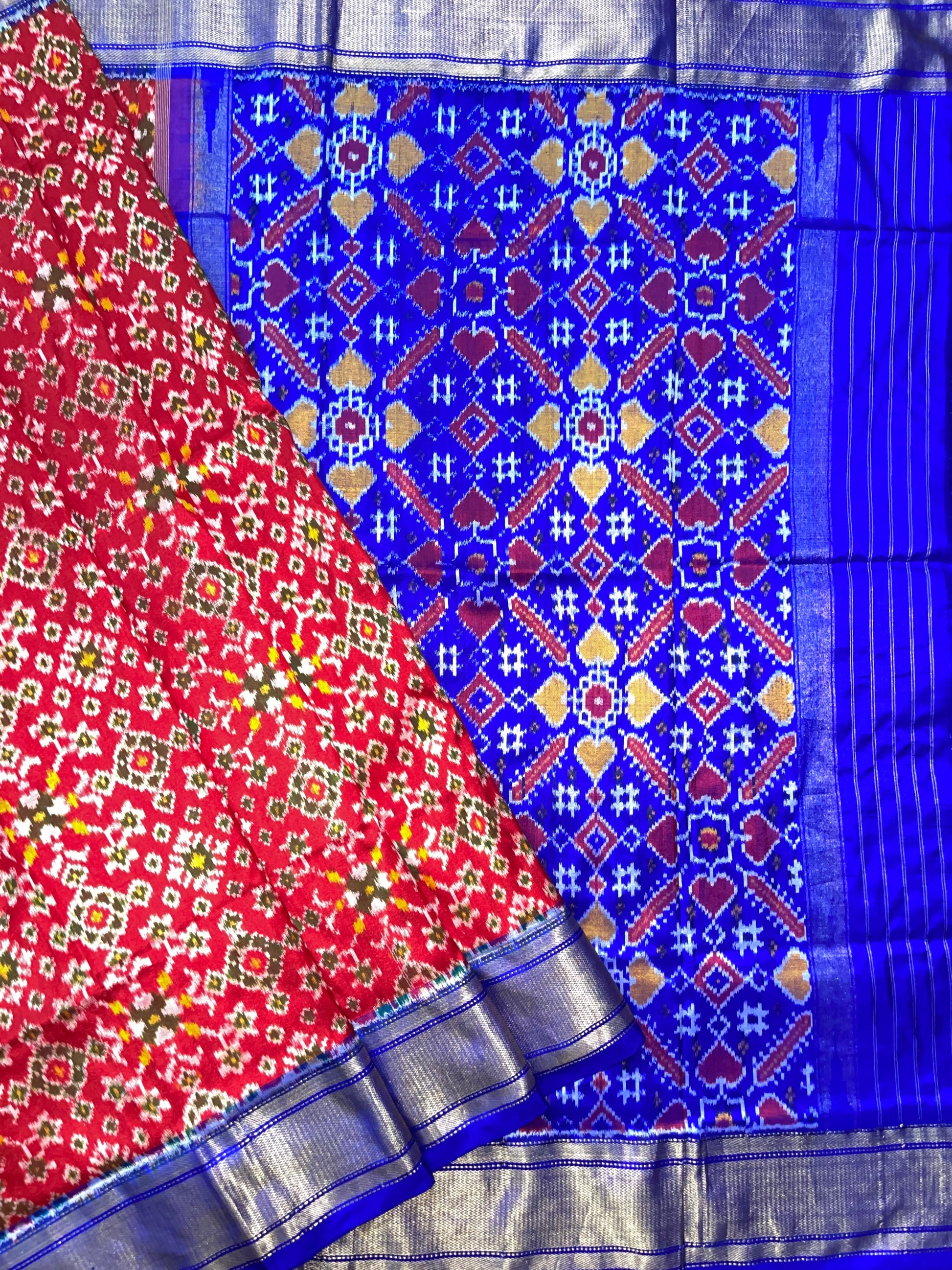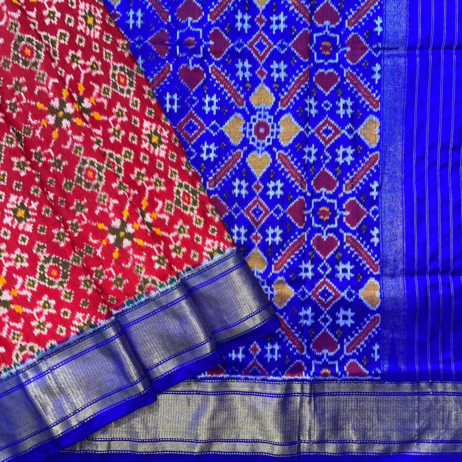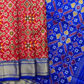 Narikuja Ikkat Silk Sari in Red & Blue