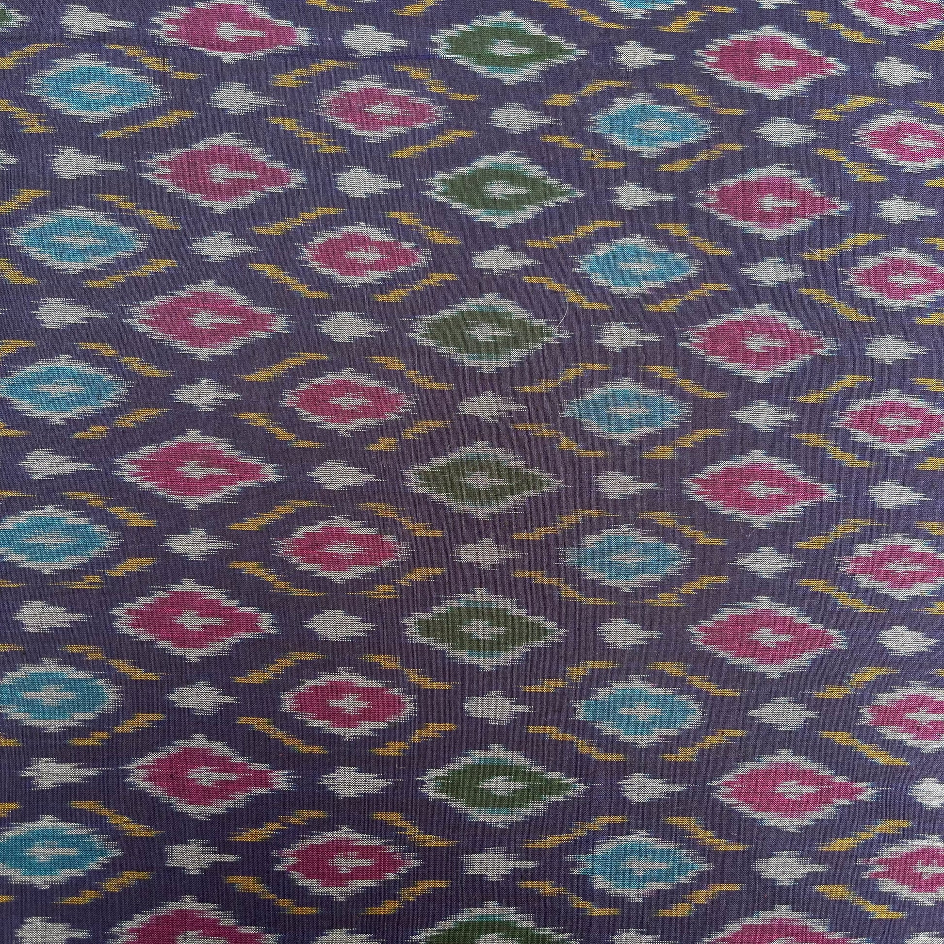 Discover the timeless charm of Ikkat Silk Cotton Fabric handwoven by skilled village master weavers of Koyyalagudem. This premium handloom ikkat fabric is crafted with a perfect blend of silk and cotton, offering both durability and a soft, lustrous finish. With a 45 inches width, it is ideal for making sarees, blouses, kurtas, dresses, and ethnic wear.