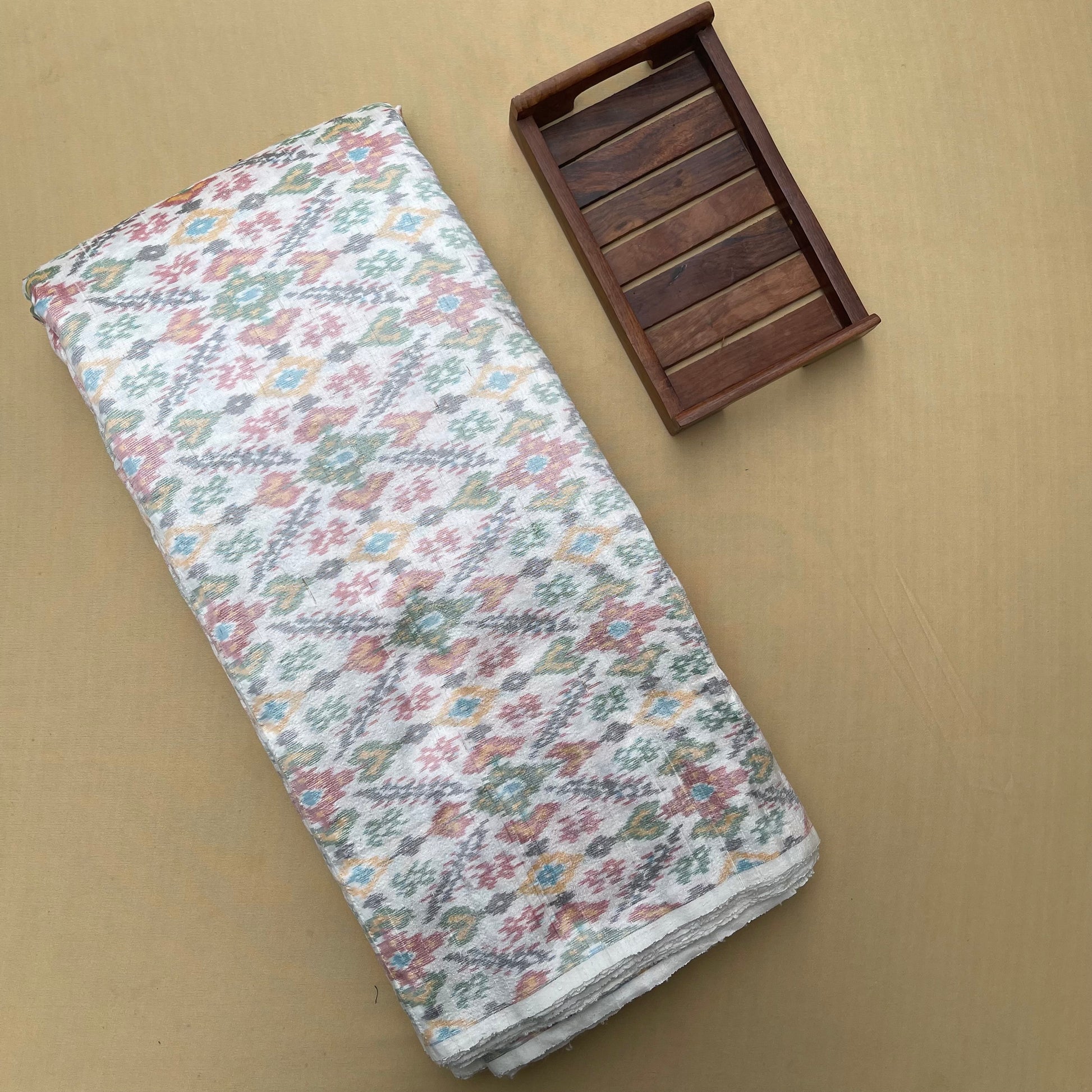 Step into the world of timeless handloom elegance with our Ikkat Raw Silk fabric, traditionally woven in Koyyalagudem village, Telangana. This heritage weave is made using the intricate tie-and-dye Ikkat technique, where every yarn is dyed before weaving, creating beautifully blurred, artistic patterns unique to each piece.