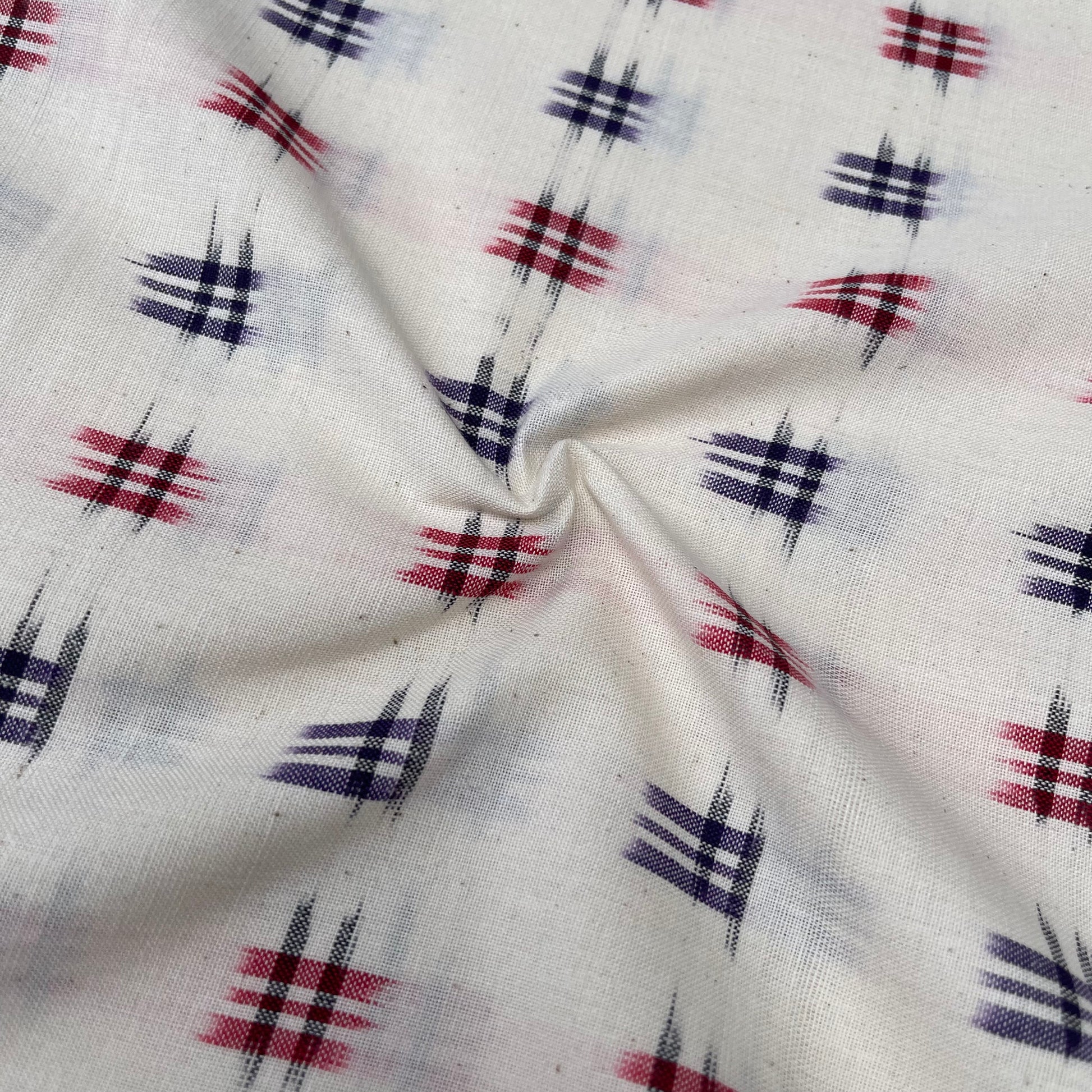 Experience the heritage of Telangana’s Koyyalagudem village with this 100% pure cotton handloom fabric. Woven using the traditional Ikkat technique, this fabric reflects the craftsmanship passed down through generations of skilled artisans.