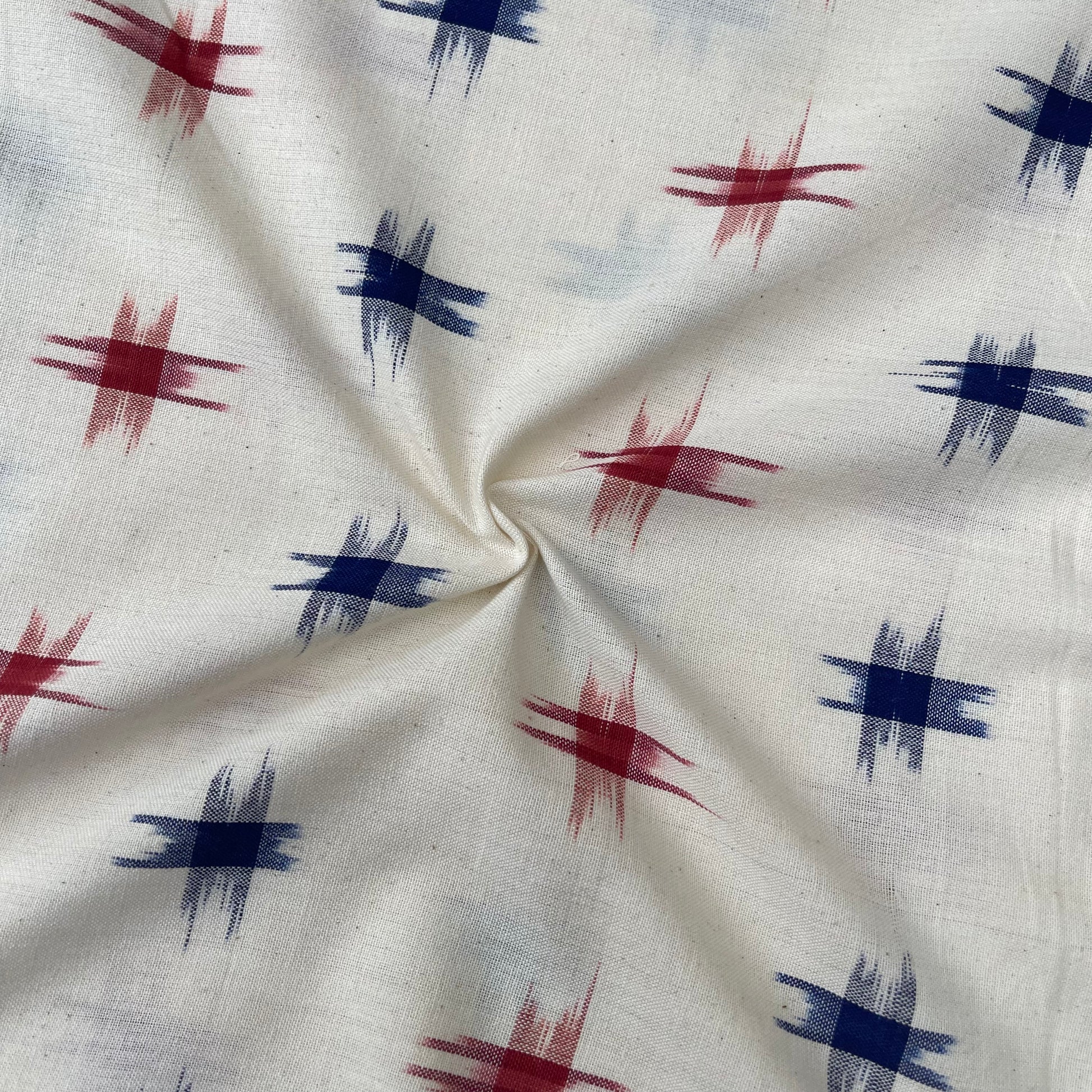Experience the artistry of handloom weaving with our Double Ikkat Cotton Fabric. In this rare technique, both warp and weft threads are tie-dyed before weaving, creating flawless patterns that reflect heritage craftsmanship. Made from 100% breathable cotton, this fabric is perfect for blouses, kurtas, and home décor projects.