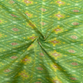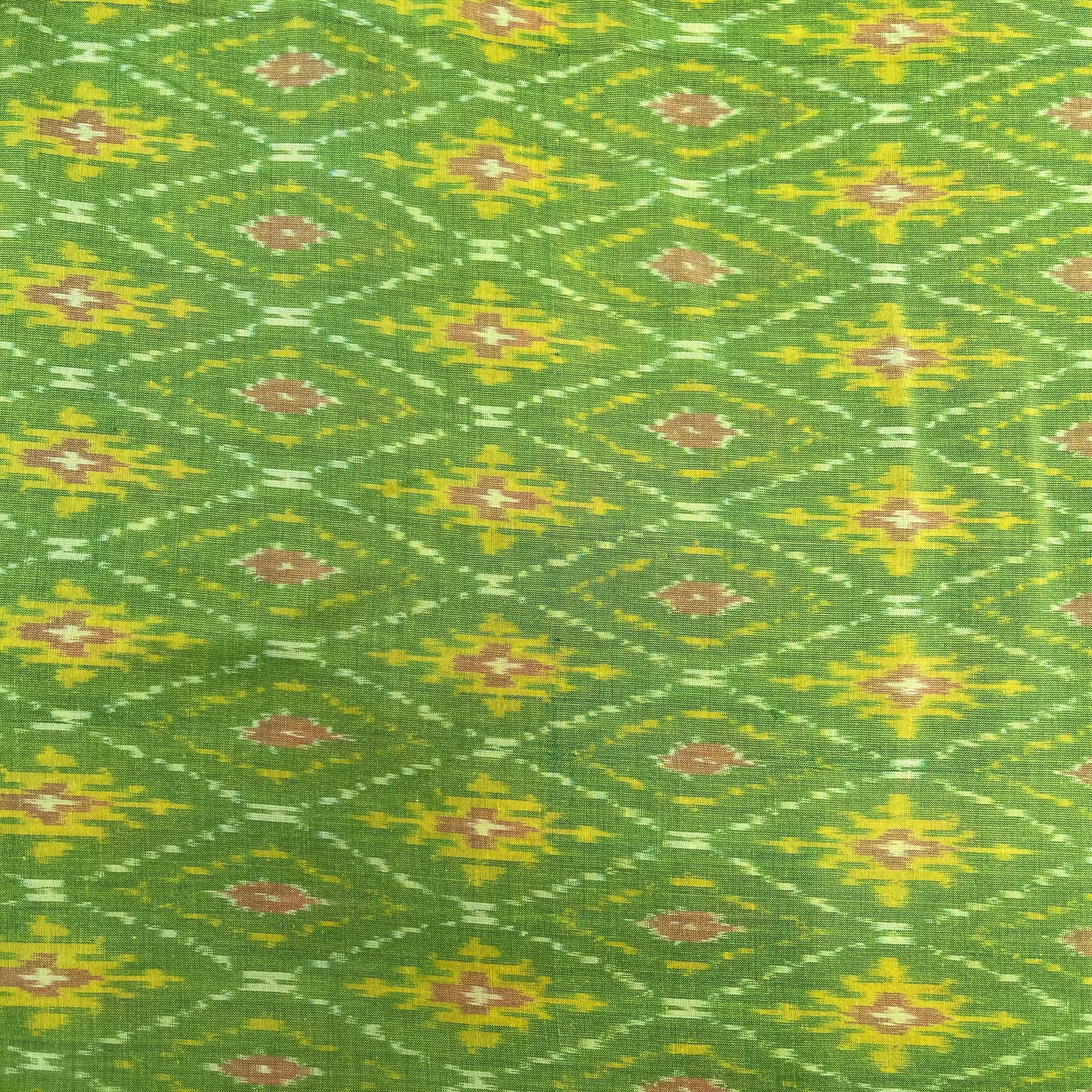 Parrot Green Color Raw Silk Ikkat cotton Fabric