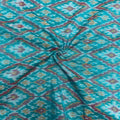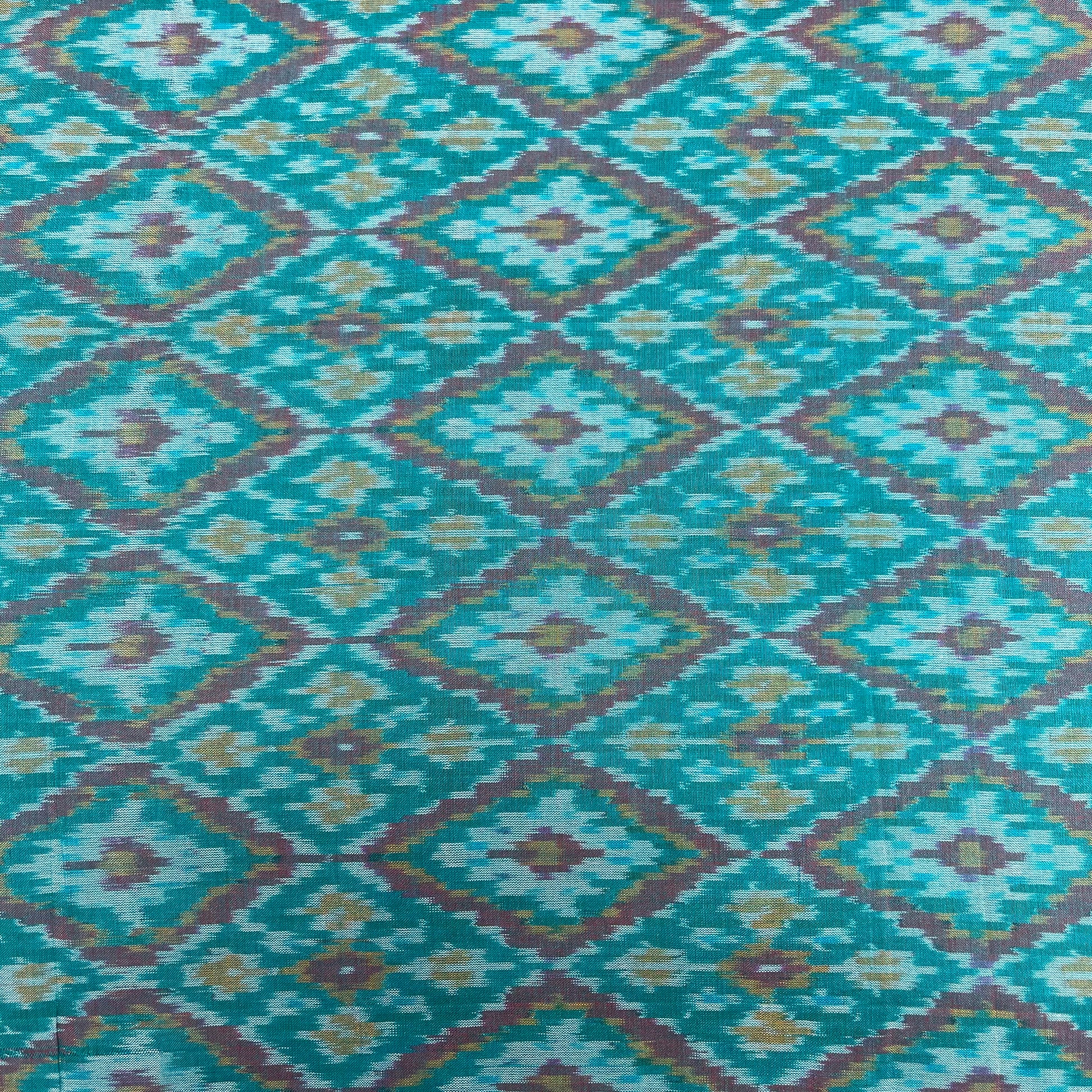 Peacock Blue Color Raw Silk Ikkat cotton Fabric