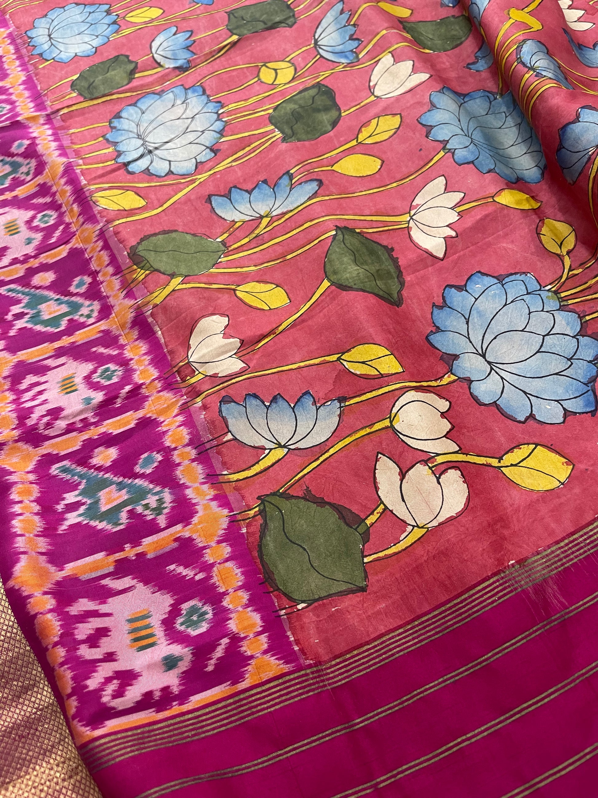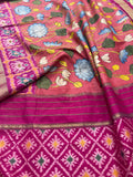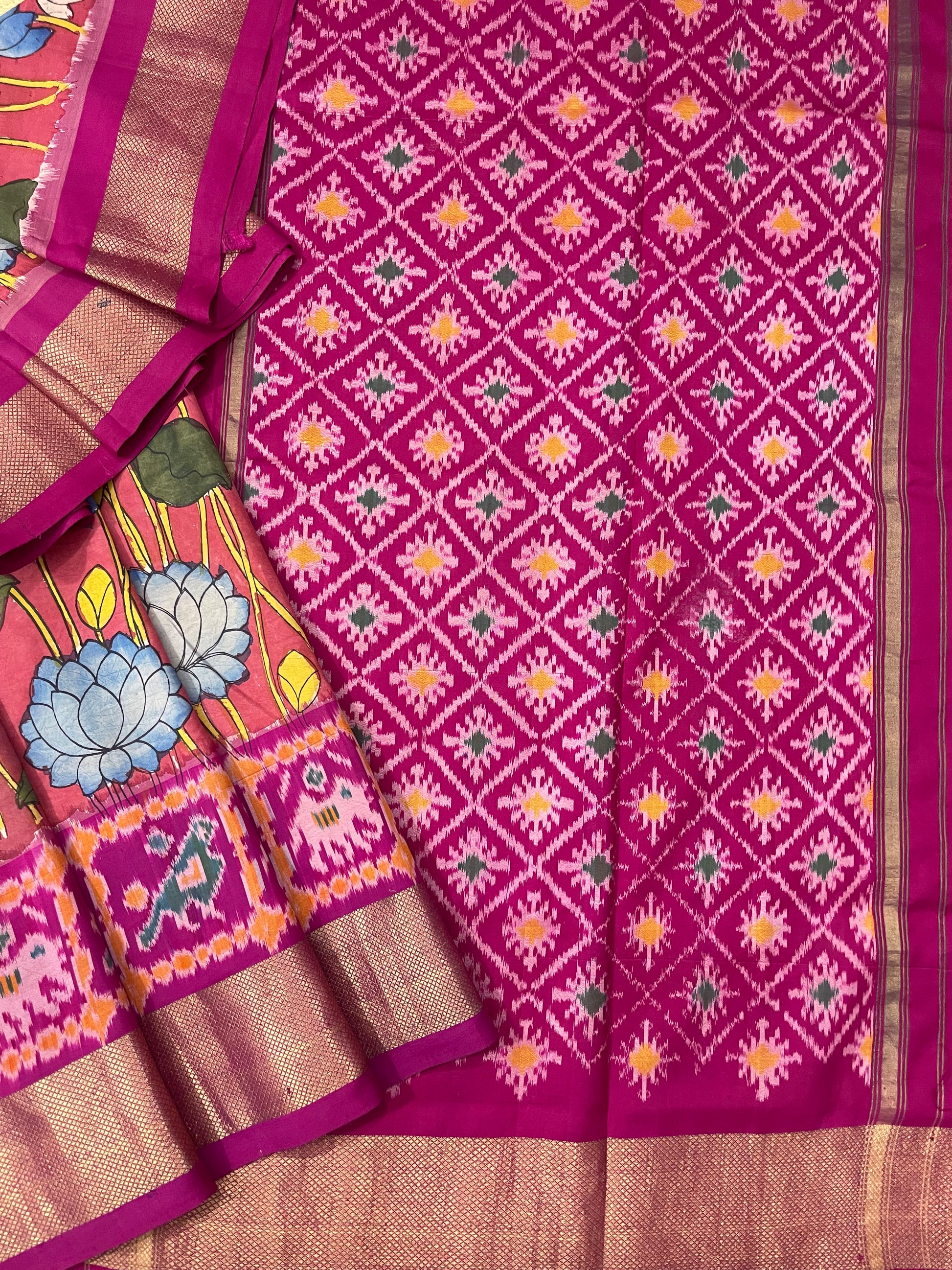 Step into the world of timeless tradition and vibrant artistry with this Ikkat Silk Saree, a true masterpiece of handwoven heritage. Crafted with precision by skilled artisans, this saree showcases the rich cultural legacy of Ikkat weaving, known for its intricate dyeing technique and bold, geometric patterns.