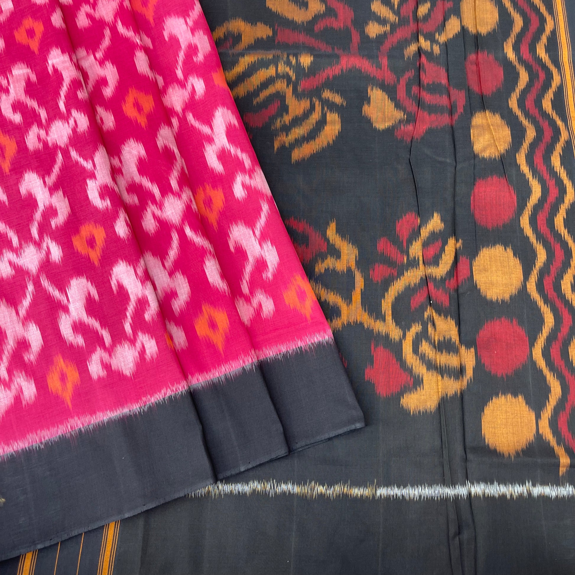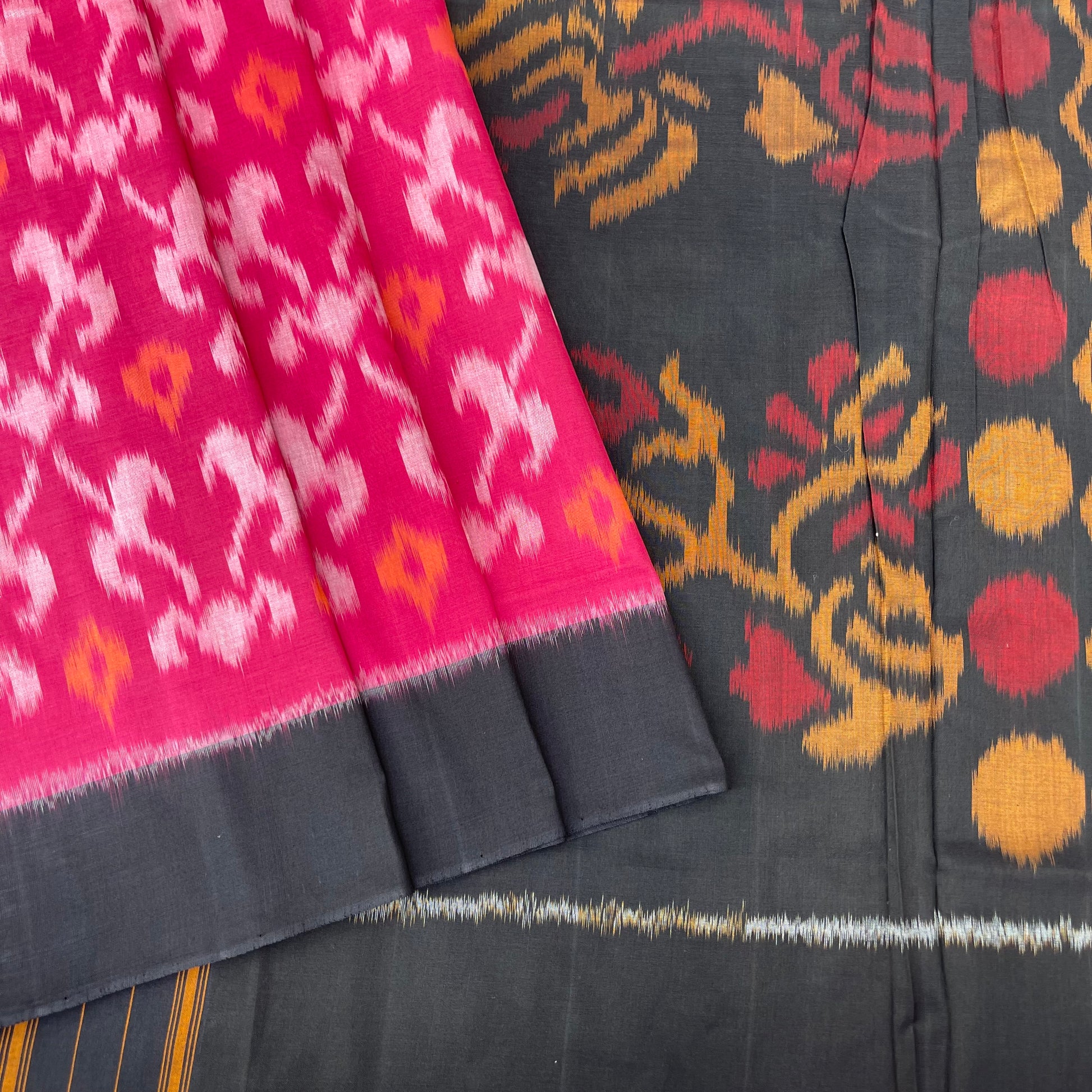 intricate patterns created through a unique dyeing technique called "Ikkat." In Ikkat weaving, the yarns are tie-dyed before weaving to create stunning, pre-determined patterns — a process that requires high skill and precision.