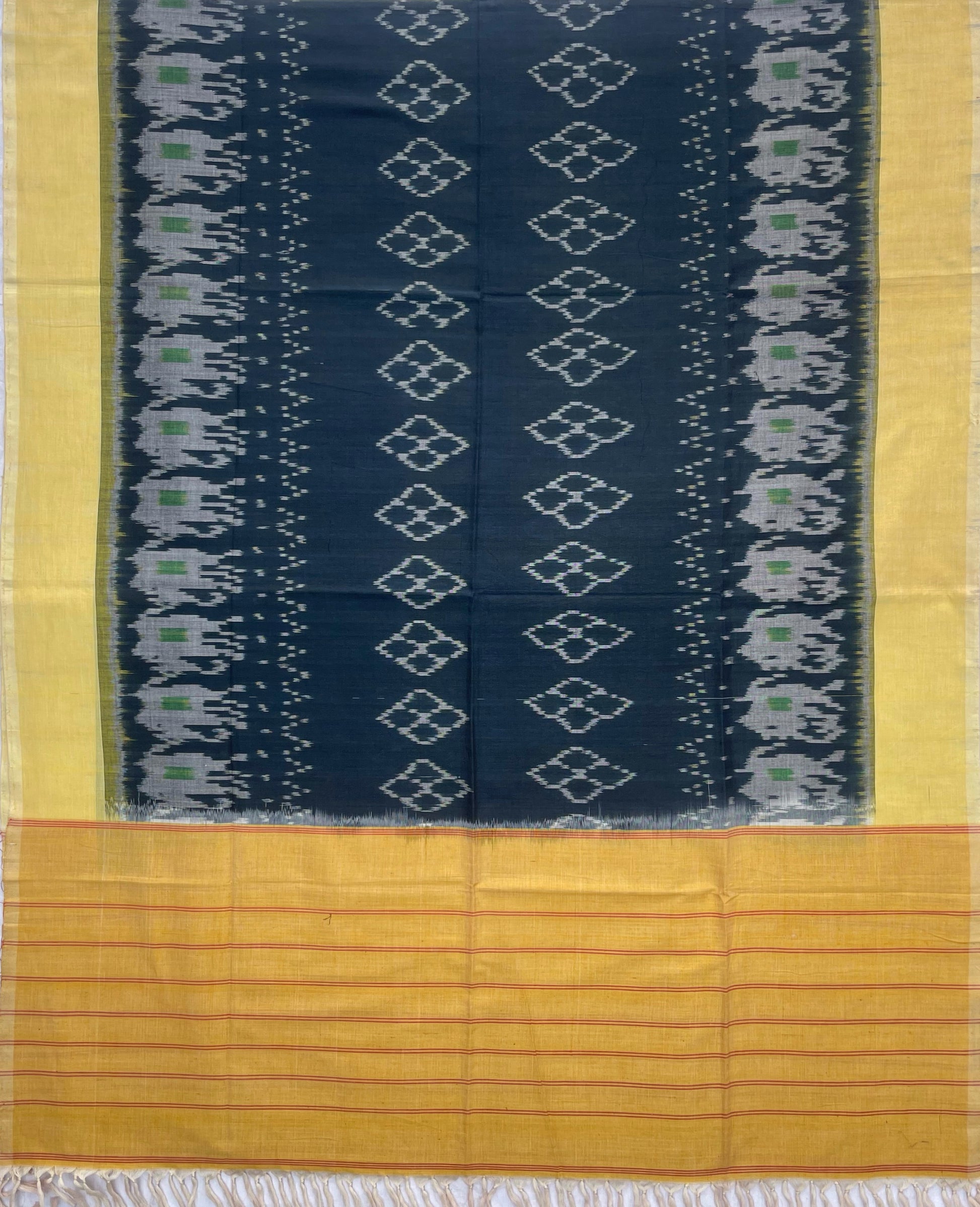 Pochampally Ikkat Cotton Duppata In Black & Yellow Colour
