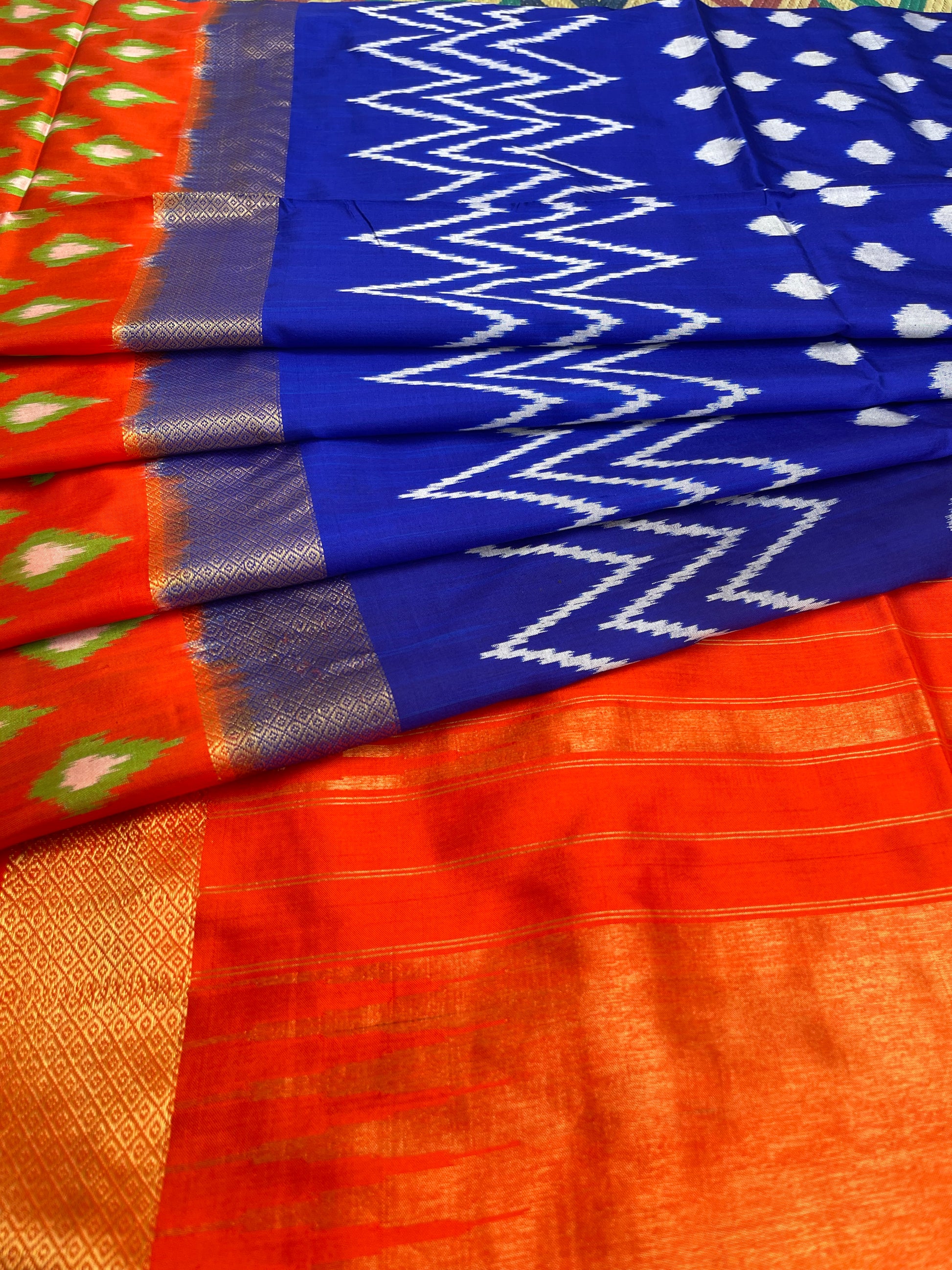 Step into the world of timeless tradition and vibrant artistry with this Ikkat Silk Saree, a true masterpiece of handwoven heritage. Crafted with precision by skilled artisans, this saree showcases the rich cultural legacy of Ikkat weaving, known for its intricate dyeing technique and bold, geometric patterns.