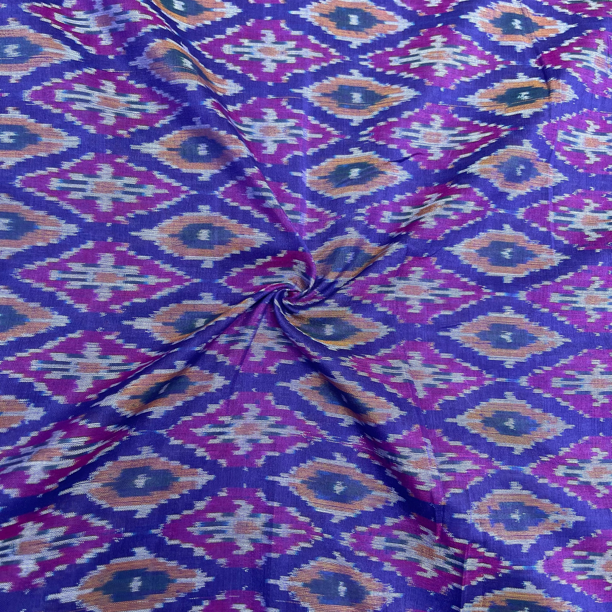 Discover the timeless charm of Ikkat Silk Cotton Fabric handwoven by skilled village master weavers of Koyyalagudem. This premium handloom ikkat fabric is crafted with a perfect blend of silk and cotton, offering both durability and a soft, lustrous finish. With a 45 inches width, it is ideal for making sarees, blouses, kurtas, dresses, and ethnic wear.