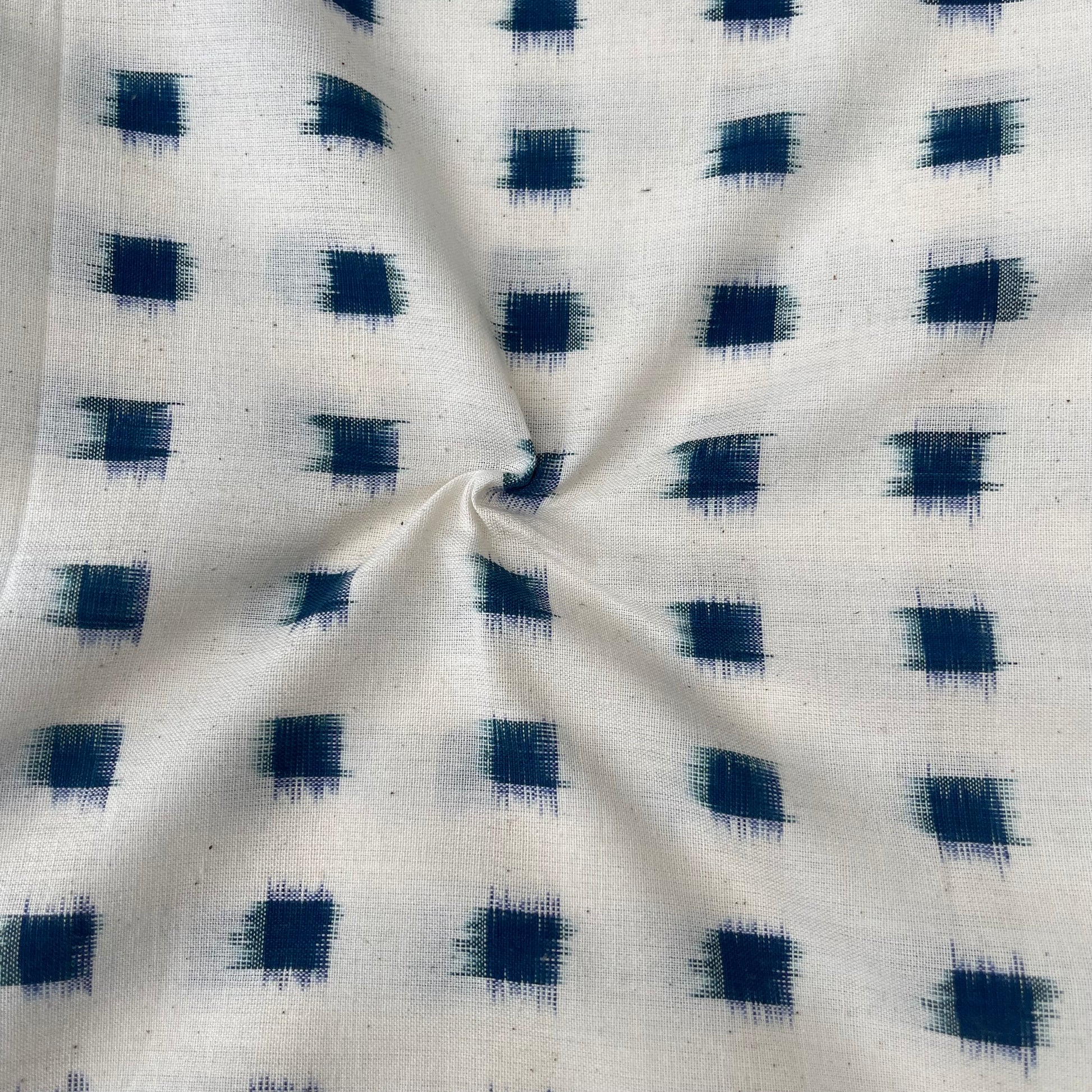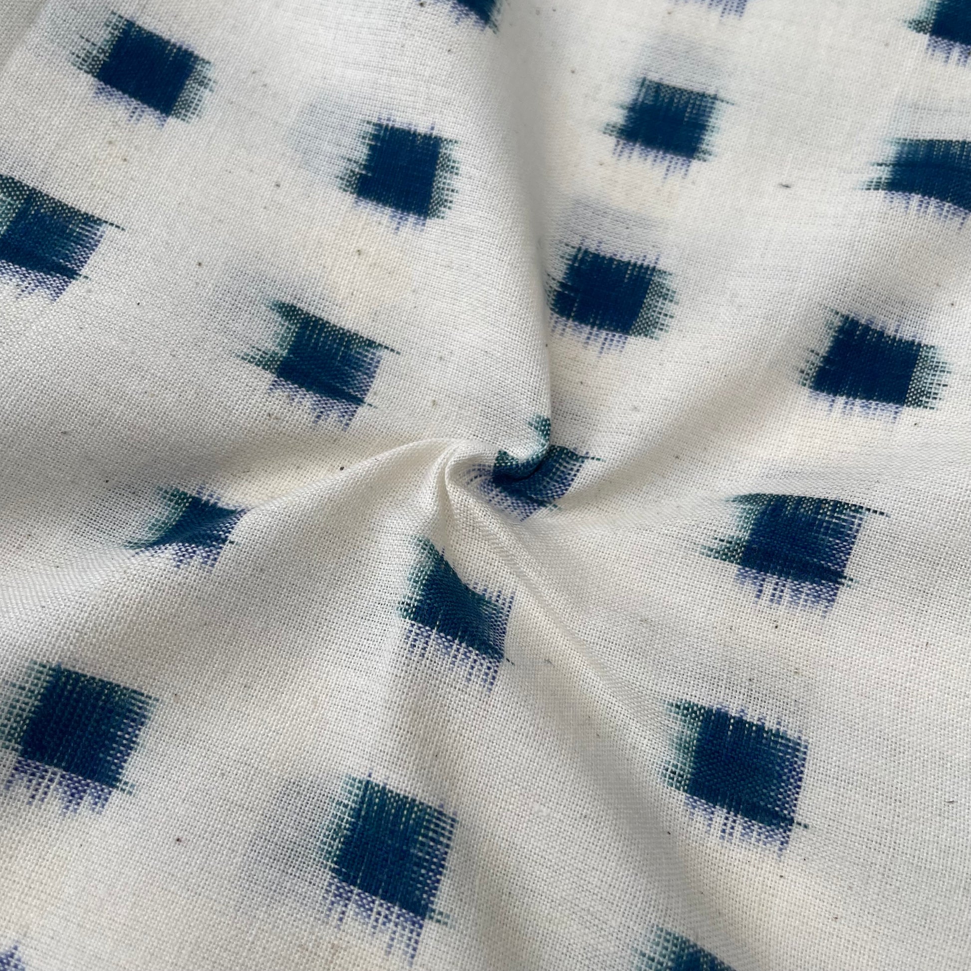 Off White & Navy Blue Pochampally Ikkat Cotton Fabric