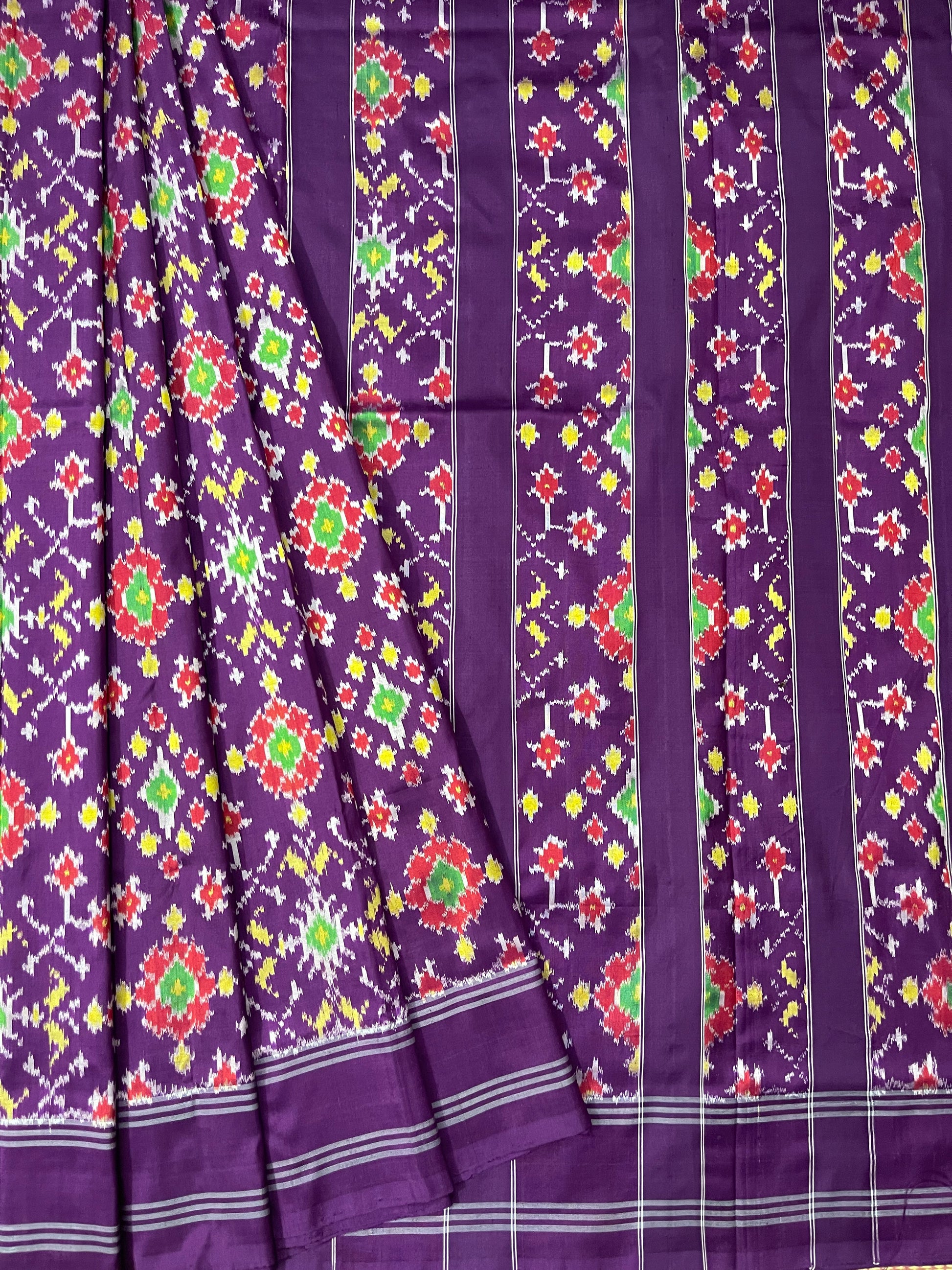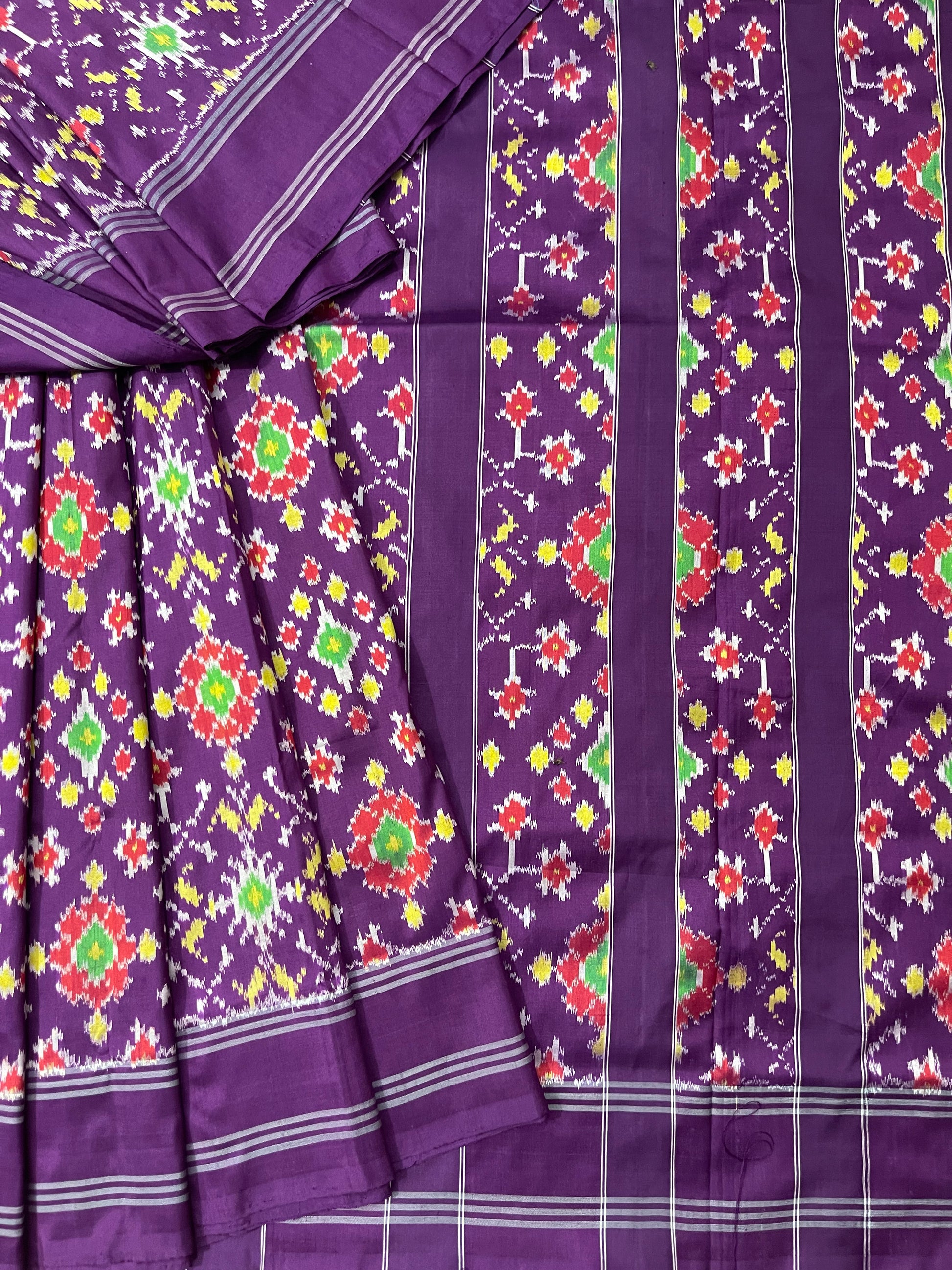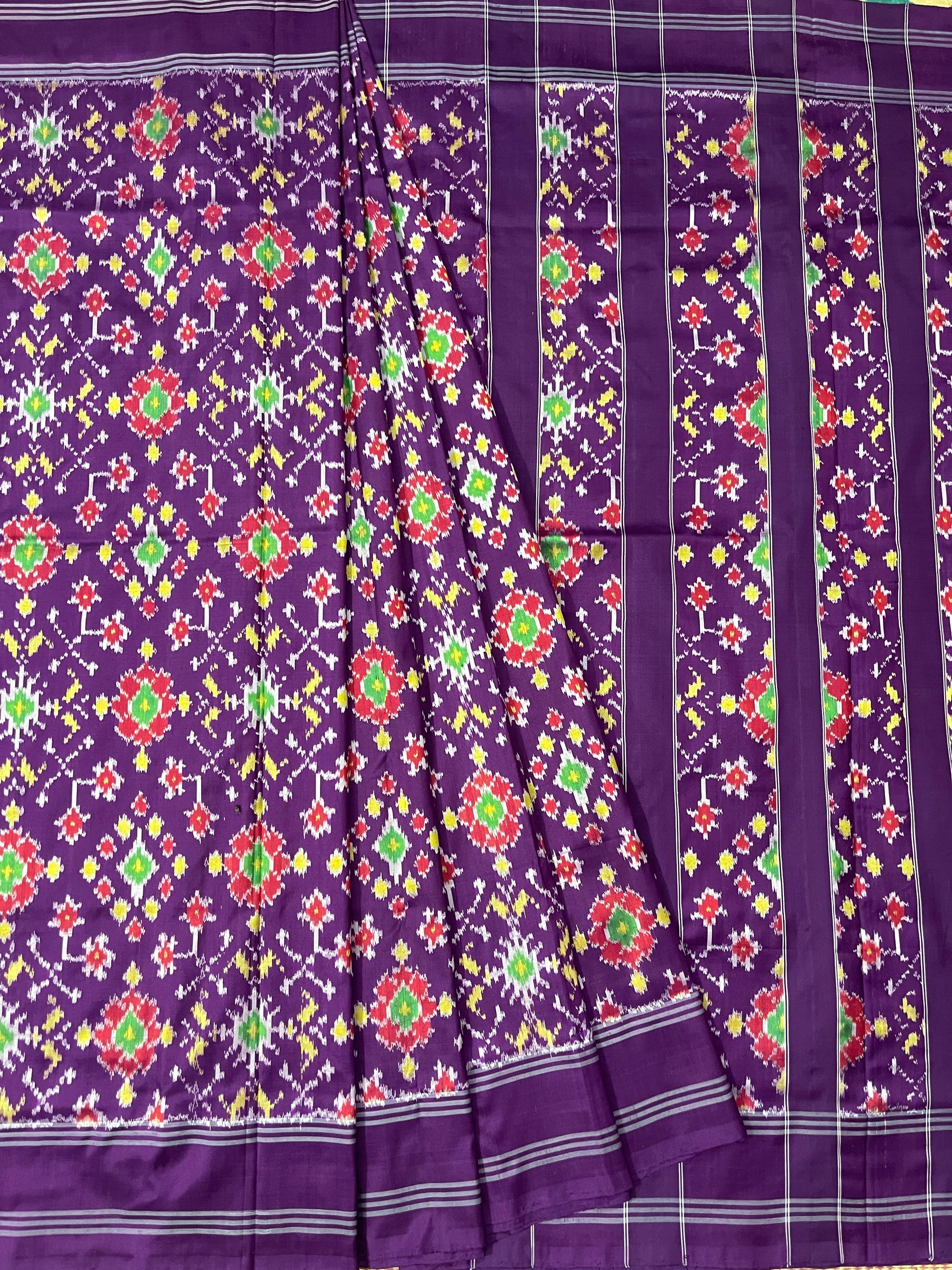Step into the world of timeless tradition and vibrant artistry with this Ikkat Silk Saree, a true masterpiece of handwoven heritage. Crafted with precision by skilled artisans, this saree showcases the rich cultural legacy of Ikkat weaving, known for its intricate dyeing technique and bold, geometric patterns.