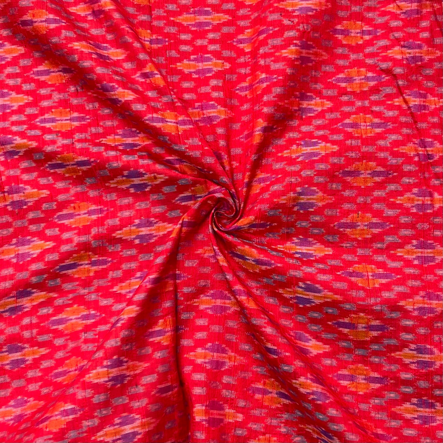 Red Color Ikkat Raw silk Fabric