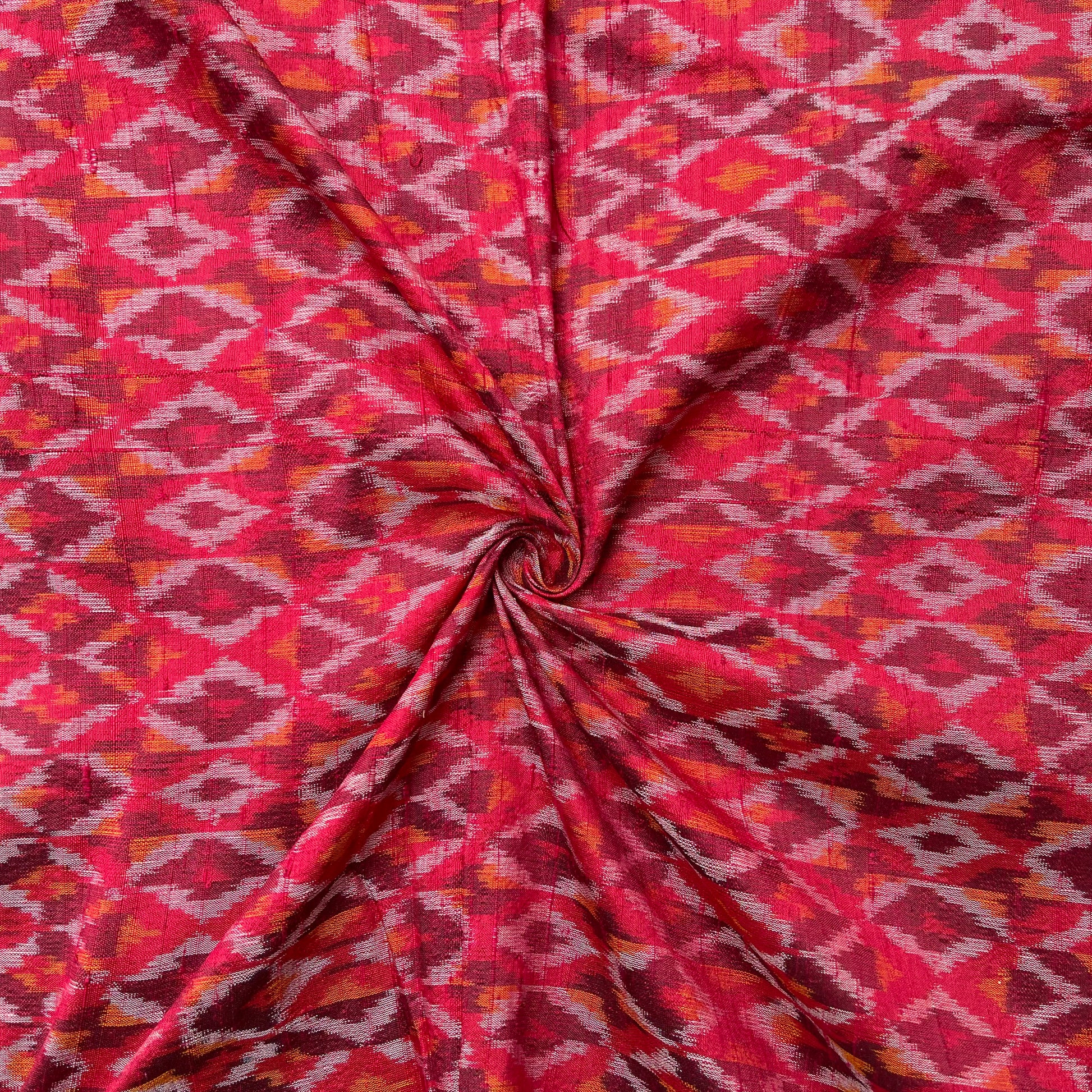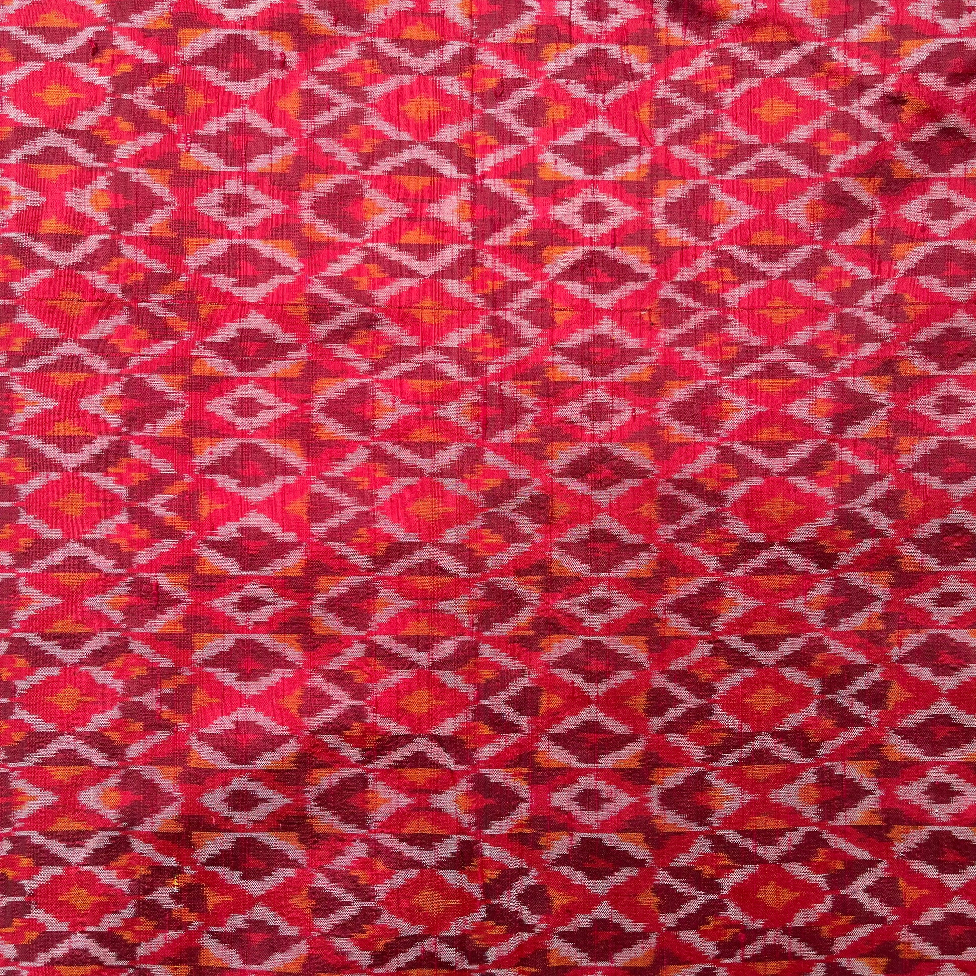 Red & Maroon Color Ikkat Raw silk Fabric