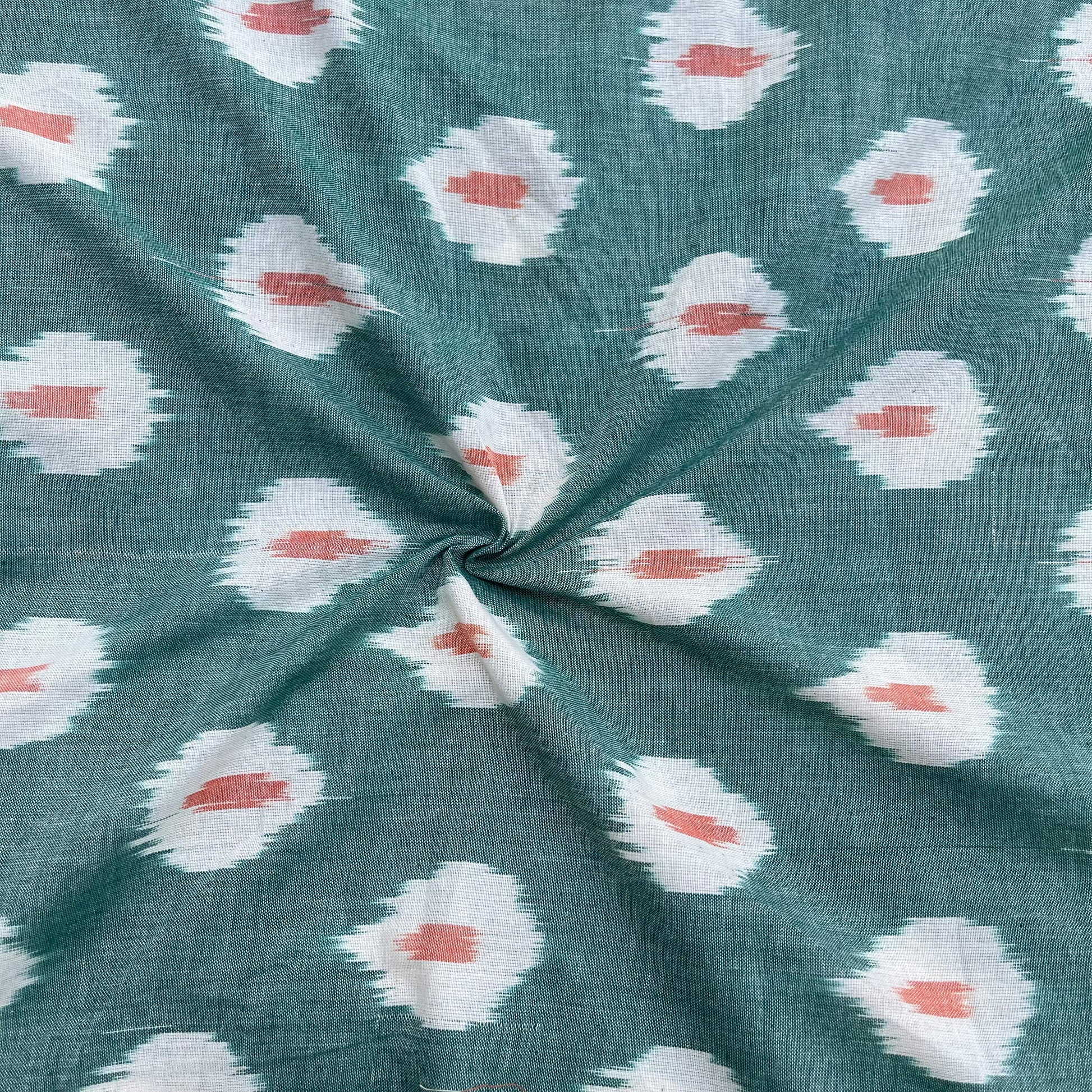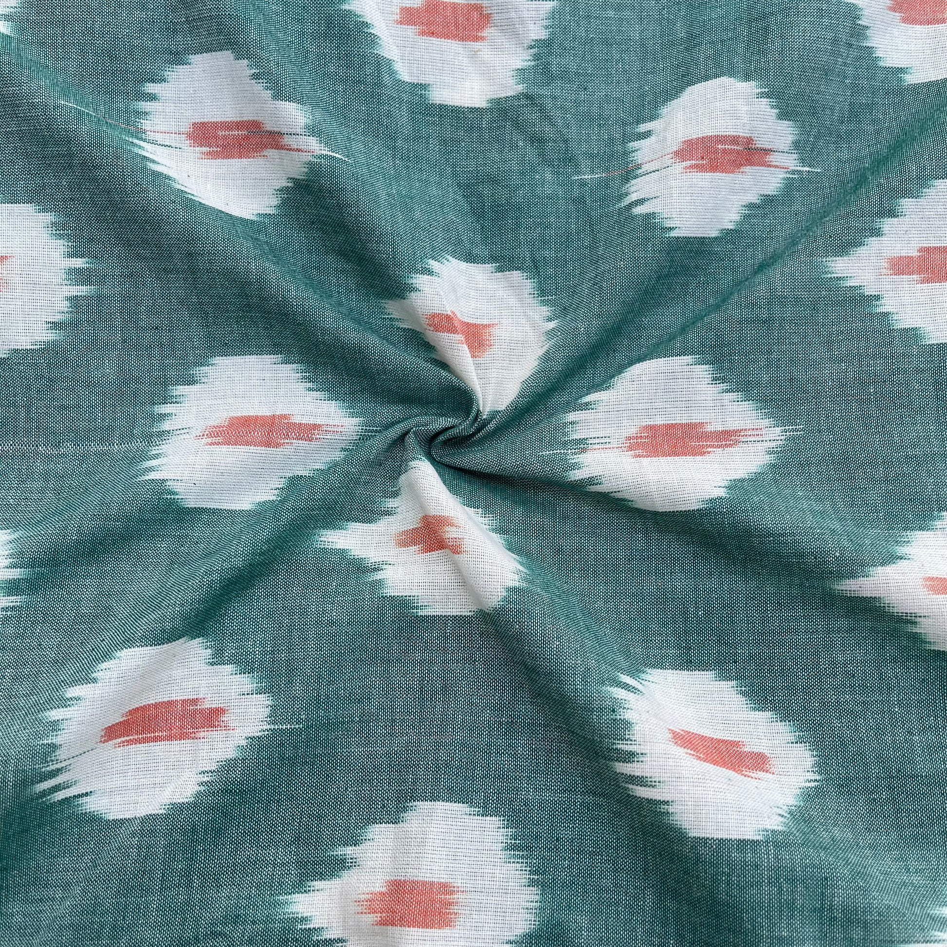 Green colour Sphere Design Telia Rumal Ikkat Cotton Fabric