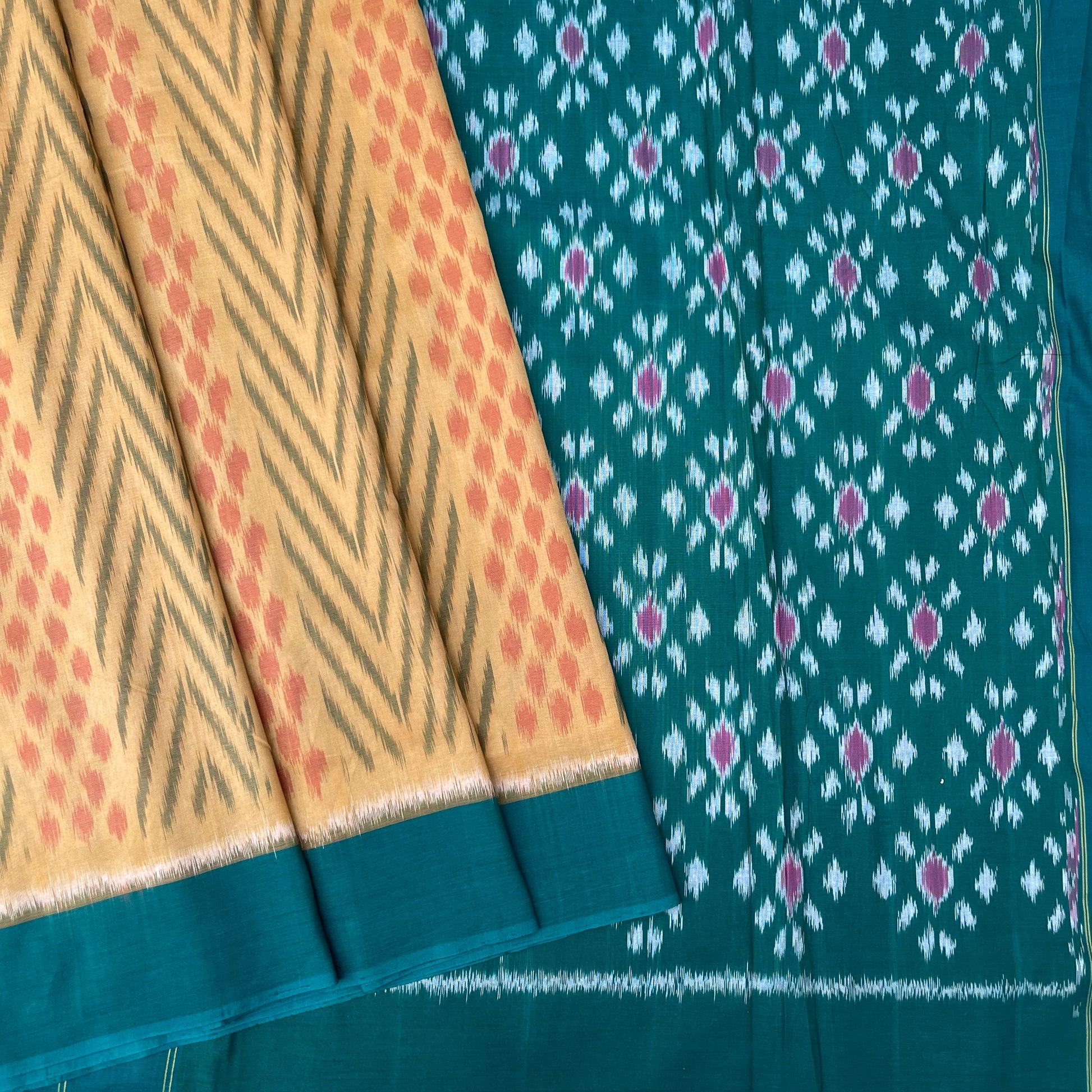 intricate patterns created through a unique dyeing technique called "Ikkat." In Ikkat weaving, the yarns are tie-dyed before weaving to create stunning, pre-determined patterns — a process that requires high skill and precision.
