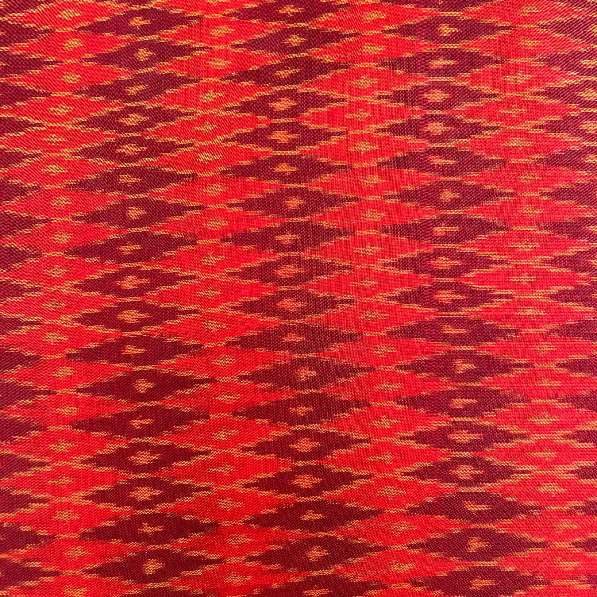 Orange Maroon Raw Silk Ikkat cotton Fabric