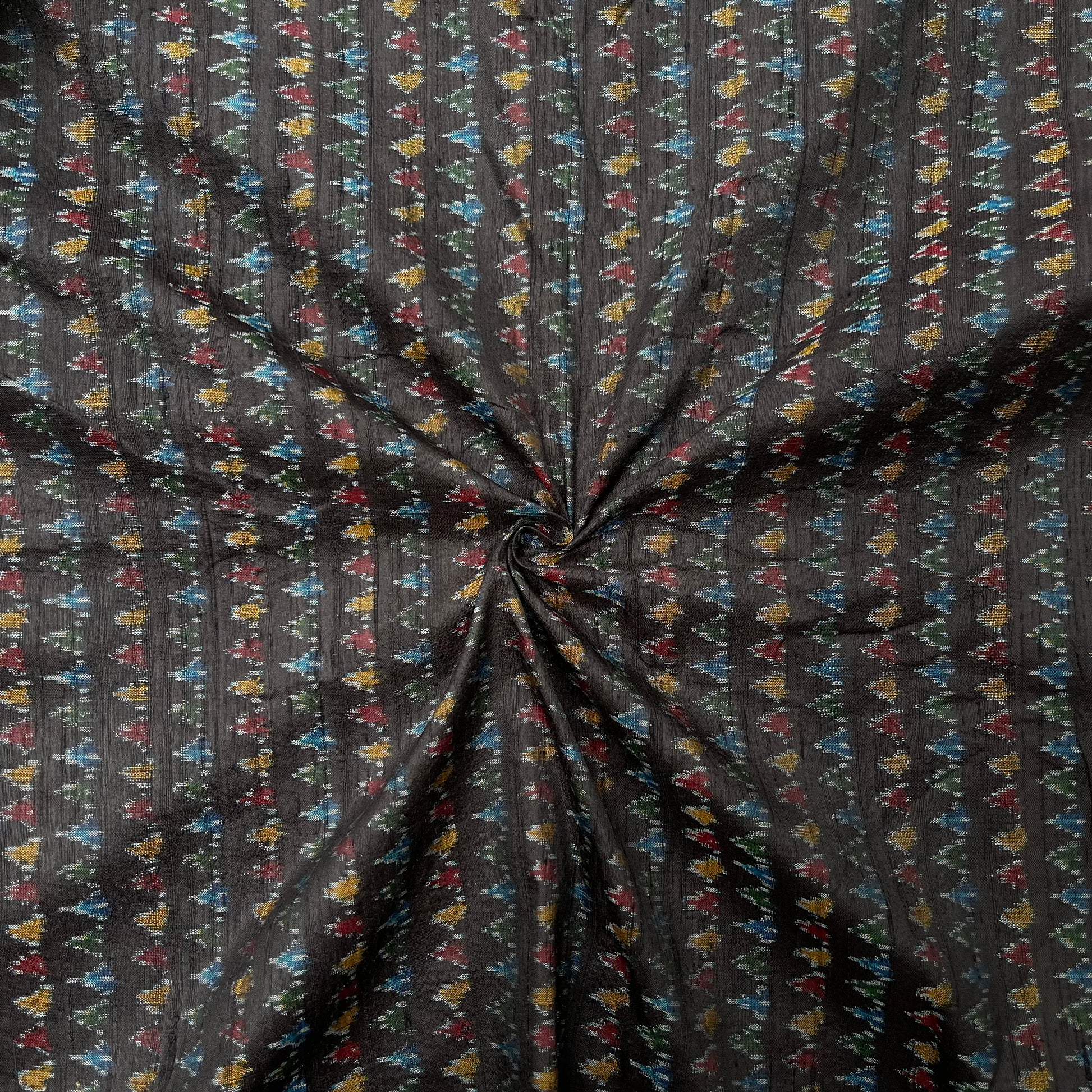 Step into the world of timeless handloom elegance with our Ikkat Raw Silk fabric, traditionally woven in Koyyalagudem village, Telangana. This heritage weave is made using the intricate tie-and-dye Ikkat technique, where every yarn is dyed before weaving, creating beautifully blurred, artistic patterns unique to each piece.