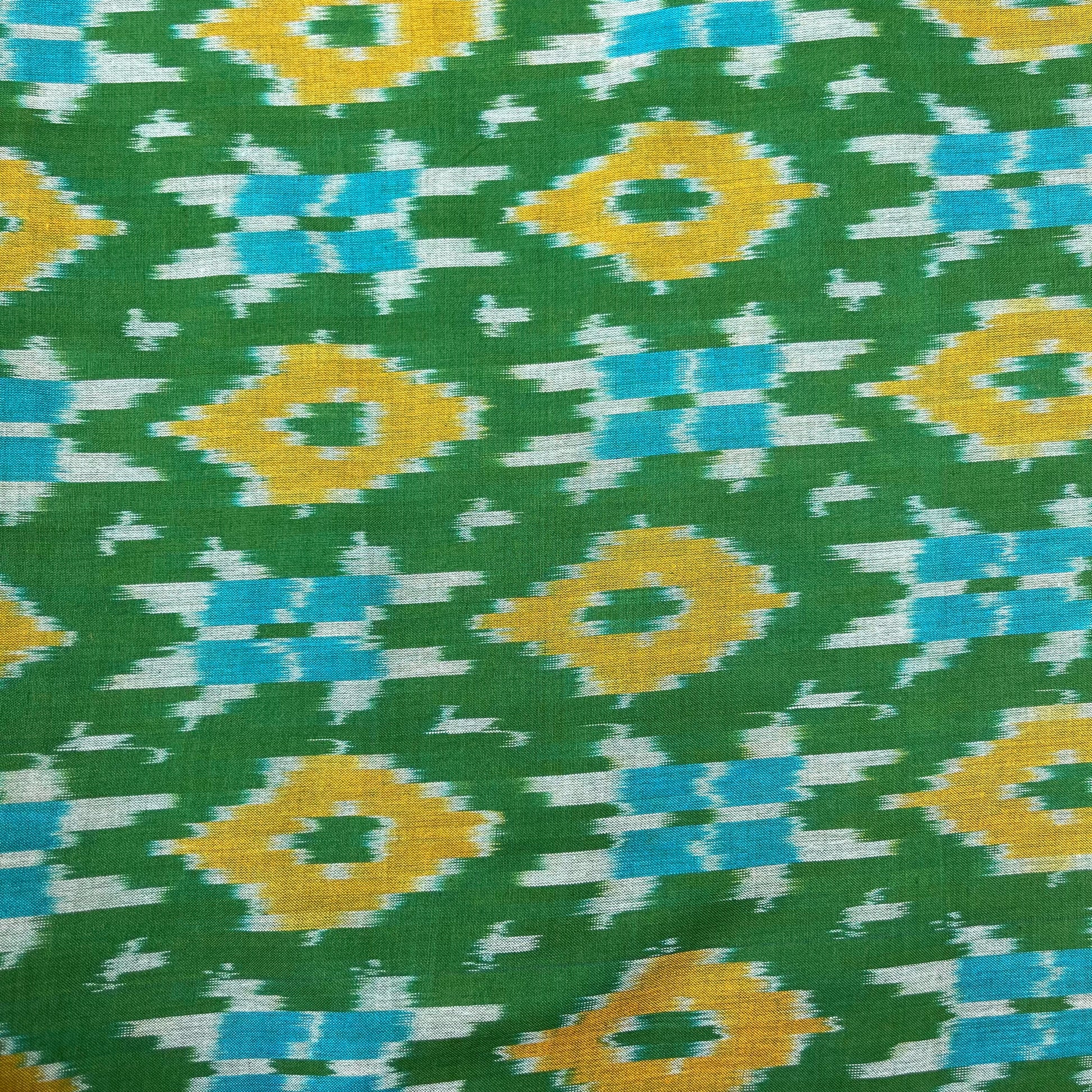 Mersiced Green Colour Ikkat Cotton Fabric 3 Meters Available